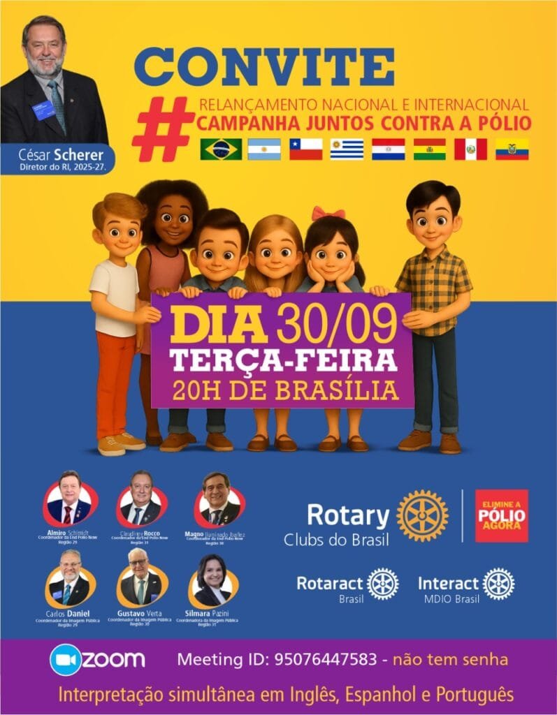 O Diretor César Scherer está convidando você e seu clube para o relançamento da Campanha Juntos Contra Pólio.
