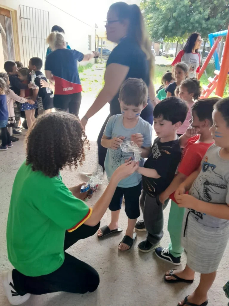 Comemorando o Dia das Crianças, o Interact Club de Santa Vitória do Palmar visitou a EMEI Jacinto para levar muitas brincadeiras e entregar mimos a todos da escola.