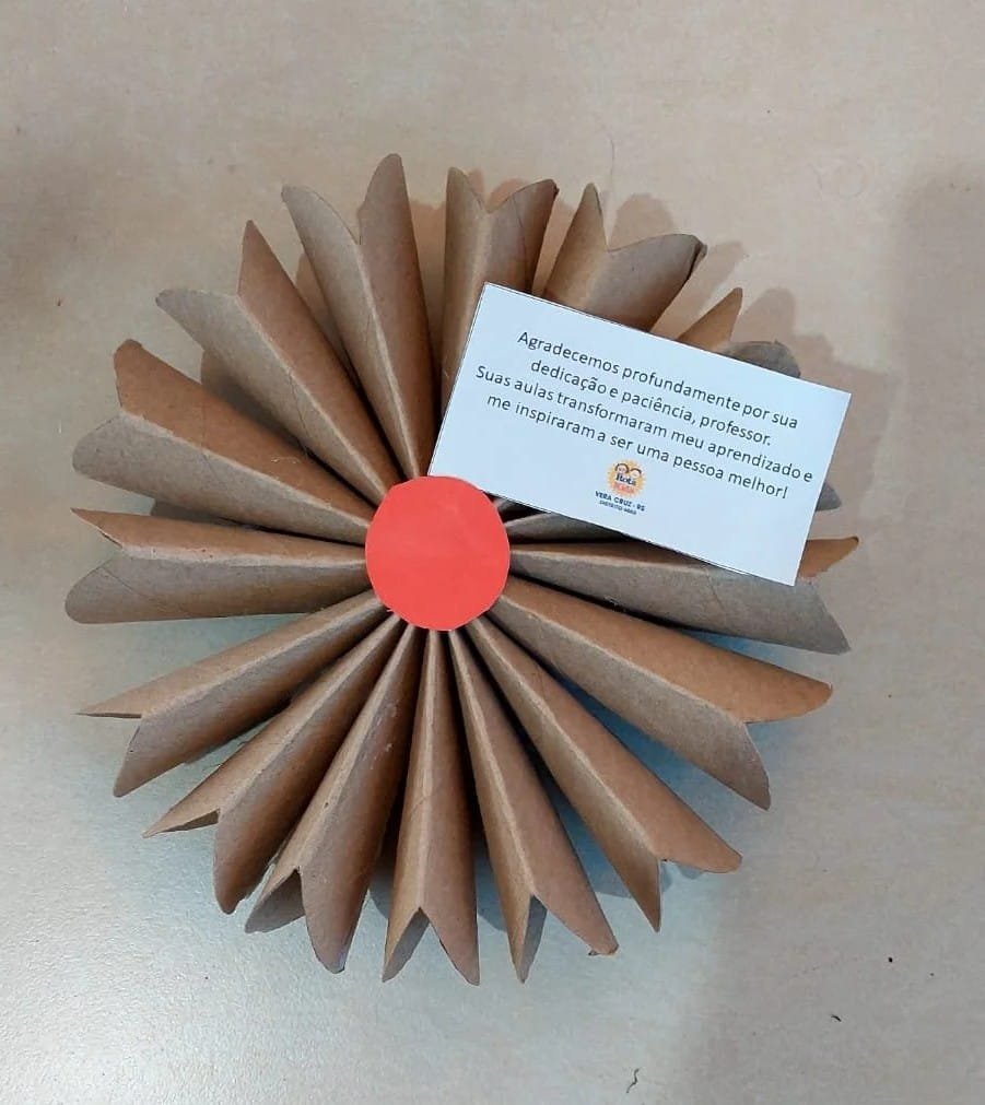 Os cartões em formato de flores foram distribuídos pelos kidianos aos professores no dia 15 de outubro, em diversas escolas do município de Vera Cruz.