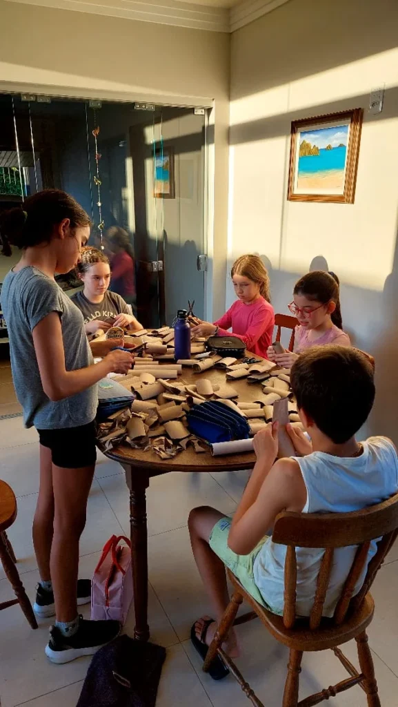 Na reunião do dia 13 de outubro, os kidianos finalizaram os cartões para o Dia dos Professores, em formato de flores, feitos com a reutilização de canudos de papel higiênico, com o objetivo de reutilizar materiais e reduzir o lixo produzido.