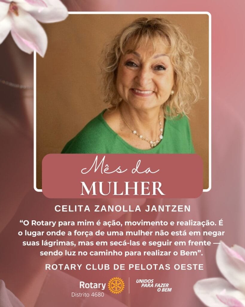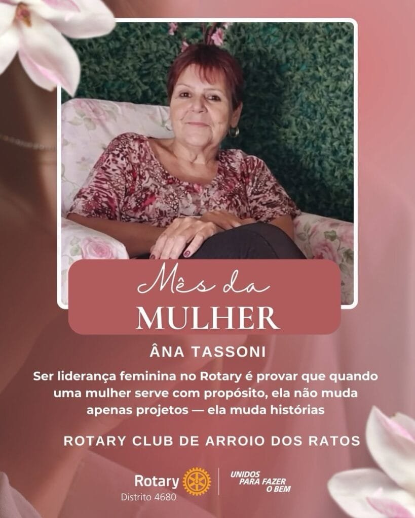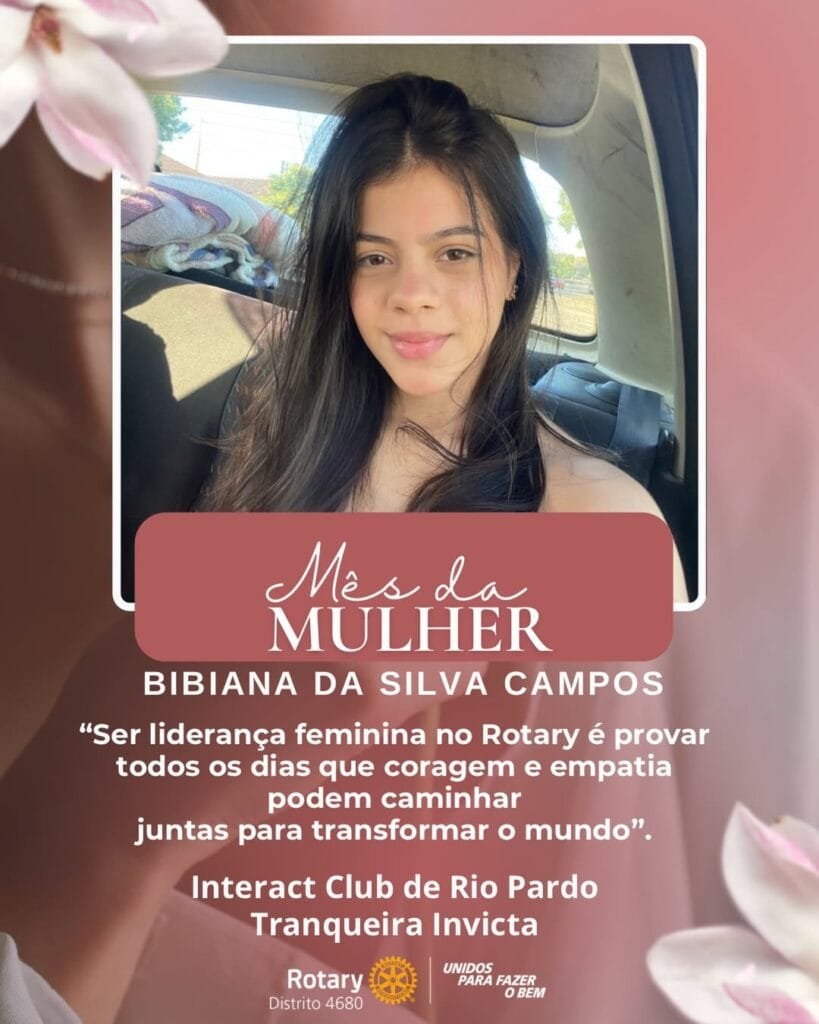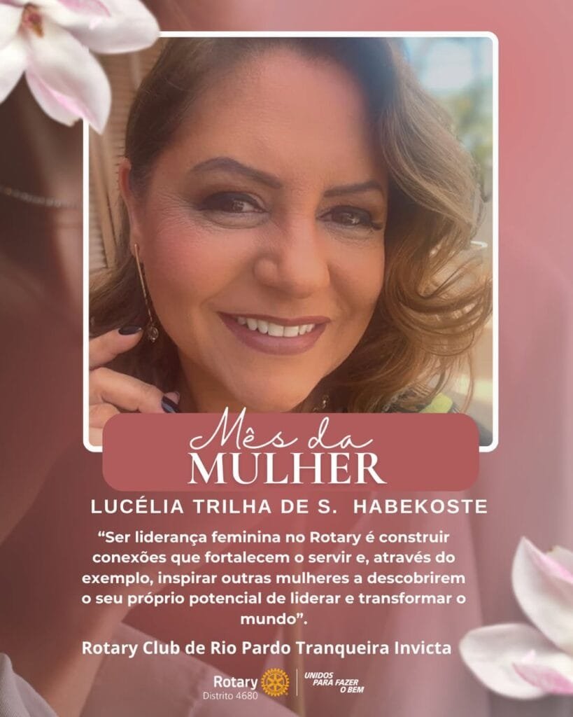 Para celebrar o Dia Internacional da Mulher, o Distrito 4680 de Rotary International promoveu a ação Lideranças Femininas que Inspiram. A iniciativa convidou presidentes de clubes, governadoras assistentes e representantes distritais de Interact e Rotaract a compartilhar uma foto e uma frase sobre o significado de ser uma liderança feminina no Rotary International. O projeto valoriza o protagonismo das mulheres e destaca lideranças que inspiram e fortalecem o impacto do servir em nossas comunidades.