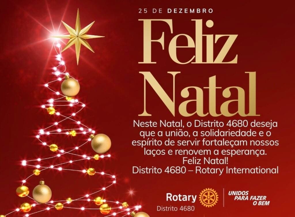 A todos os rotarianos, rotarianas, famílias, parceiros e voluntários do Distrito 4680, o nosso profundo agradecimento. Que o Natal traga paz, amor e luz aos lares, e que o Ano Novo nos encontre unidos, motivados e prontos para seguir fazendo o bem e sendo o bem, todos os dias.