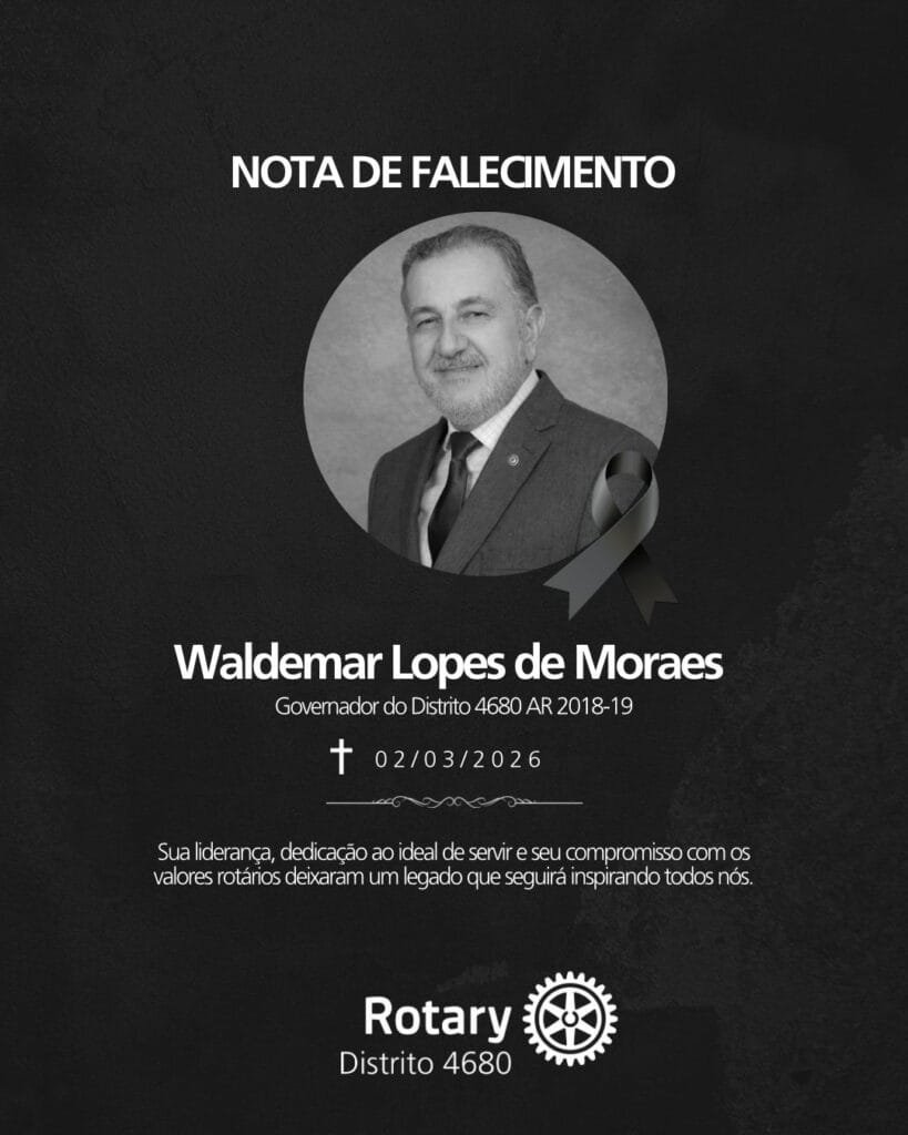 Com profundo pesar, o Distrito 4680 do Rotary comunica o falecimento de Waldemar Lopes de Moraes, Governador do Distrito 4680 no ano rotário 2018-19.