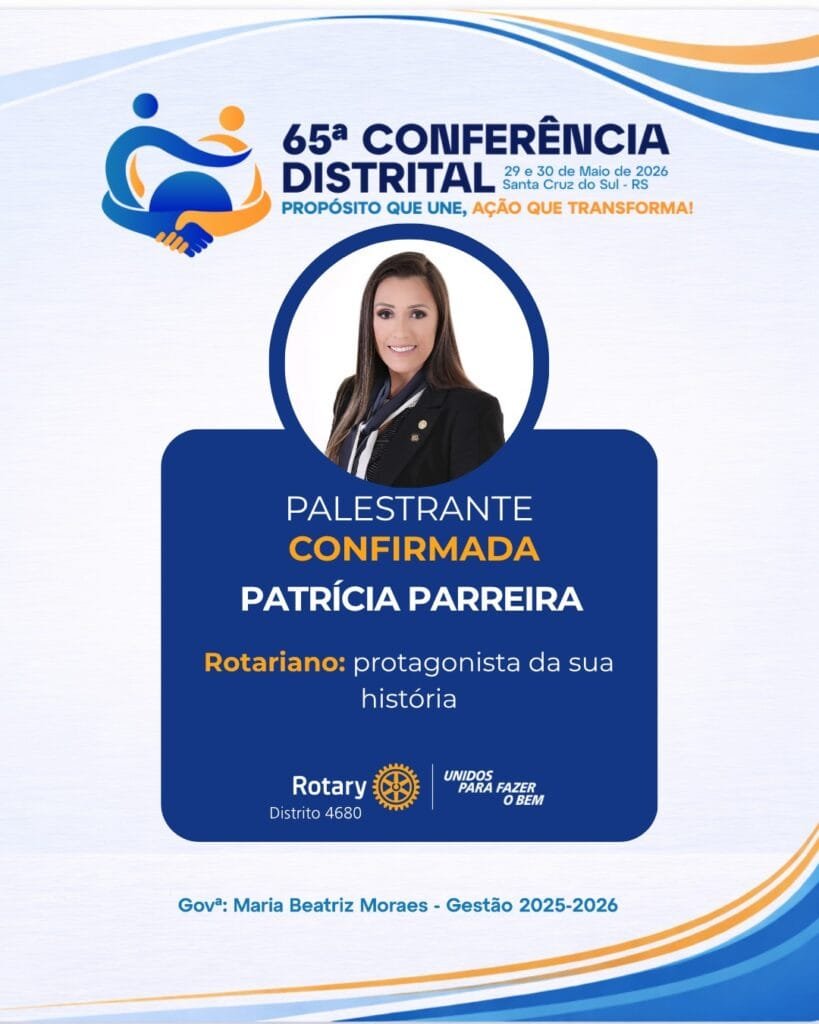 Patrícia Parreira é jornalista e Governadora do Distrito 4780 no Ano Rotário 2024-2025, trazendo não só experiência, mas uma visão profunda sobre liderança e consciência.