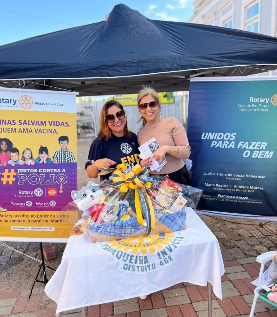 Na tarde do dia 28/10, o Rotary Club de Rio Pardo Tranqueira Invicta se fez presente no calçadão da cidade histórica de Rio Pardo para divulgar uma das ações mais impactantes em que o Rotary atua há muitos anos: a erradicação da poliomielite no mundo. A ação contou com o apoio da comunidade, que participou do sorteio de uma rifa recheada de produtos deliciosos, montada pelos próprios companheiros do Clube.